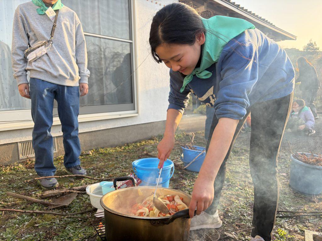 火を起こして、たき火や調理をしたり、